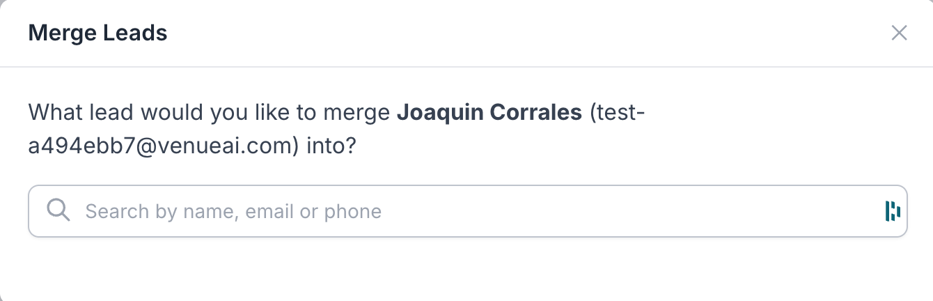 - Browse. for the lead that you want to merge this lead into. Merging will combine field values, appointments, conversations, and lead activity.