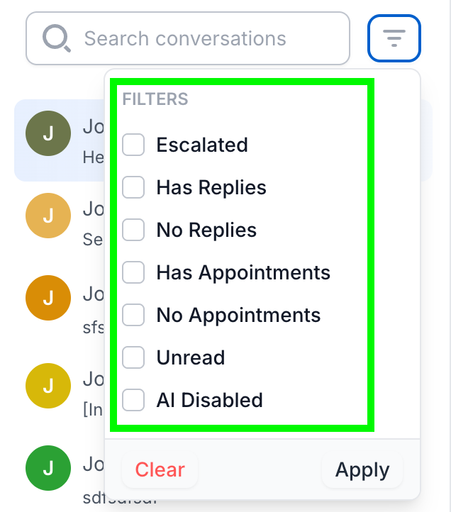In addition to our already existing filter set, you can now filter for conversations without replies, with appointments and without appointments.